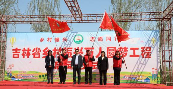 省“鄉村振興 萬人圓夢”工程由省委宣傳部文明實踐志愿服務處、省志愿服務聯合會和省鄉村振興促進會指導,由省志聯、鄉促會鄉村振興志愿服務專業委員會發起。啟動大會由長春市柏合助老志愿者協會聯合長春蓮花山度假區黨工委宣傳部、鄉村振興局、退役軍人事務局舉辦。 啟動儀式上,為省鄉村振興志愿服務試點區授旗,長春蓮花山度假區、撫松縣和輝南縣為吉林省鄉村振興志愿服務試點區。