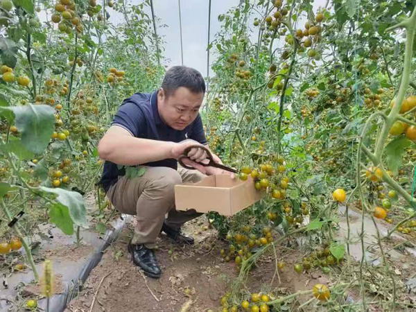 “進(jìn)村就是農(nóng)家人,駐村就得辦實(shí)事兒。”懷揣著第一書記的初心使命,劉鑫暗暗下定決心。 為了能夠快速開展工作,剛一駐村,劉鑫便虛心向村干部請(qǐng)教,找出開展工作的重點(diǎn)與難點(diǎn)。 “大家都沒拿我當(dāng)外人,要么告訴我產(chǎn)業(yè)發(fā)展瓶頸,要么教我農(nóng)村工作辦法,門道還真是不少……于是,我每天早早就起來走村入戶,和老百姓嘮家常,了解每家情況。不到半年,我對(duì)村里各家各戶情況做到了心中有數(shù),大大地增強(qiáng)了做好工作的信心。” 交心、傾聽、記錄…… 一個(gè)小時(shí)車程很快到了目的地——村里新建大棚。 這個(gè)大棚是劉鑫用第一年駐村補(bǔ)助的3萬多元,加上從家里拿的1萬元建起來的,占地704平方米,種植青口蜜小番茄3000余株。 劉鑫邊摘柿子邊對(duì)記者說:“我駐村第一晚就在想,到底能為村里做點(diǎn)啥?怎么才能增加村民收入?”后來,“中央一號(hào)”文件、國家鄉(xiāng)村振興局、農(nóng)業(yè)農(nóng)村部相繼出臺(tái)鼓勵(lì)引導(dǎo)脫貧地區(qū)高質(zhì)量發(fā)展庭院經(jīng)濟(jì)的指導(dǎo)意見。縣鄉(xiāng)黨委、鄉(xiāng)政府也多次提出發(fā)展庭院經(jīng)濟(jì),增加村民收入。 劉鑫在走訪脫貧戶和村民聊天中,大家覺得自家園子種植玉米經(jīng)濟(jì)效益低,都有提高庭院經(jīng)濟(jì)收入的想法,但是沒有經(jīng)驗(yàn),缺少一個(gè)“領(lǐng)頭羊”。 面對(duì)政策優(yōu)勢(shì)和村里的資源稟賦,劉鑫陷入了深深的思考。