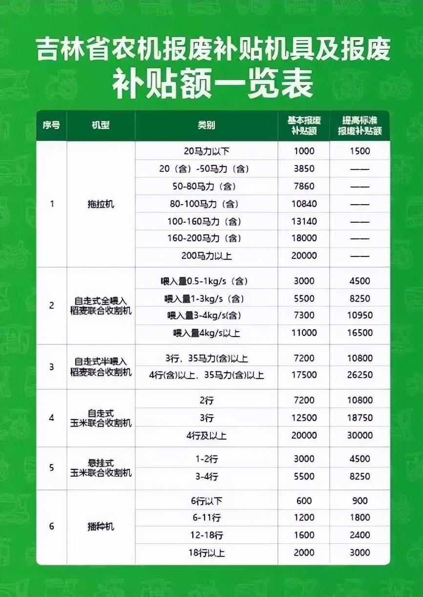 吉林省農業機械報廢更新補貼政策明白卡