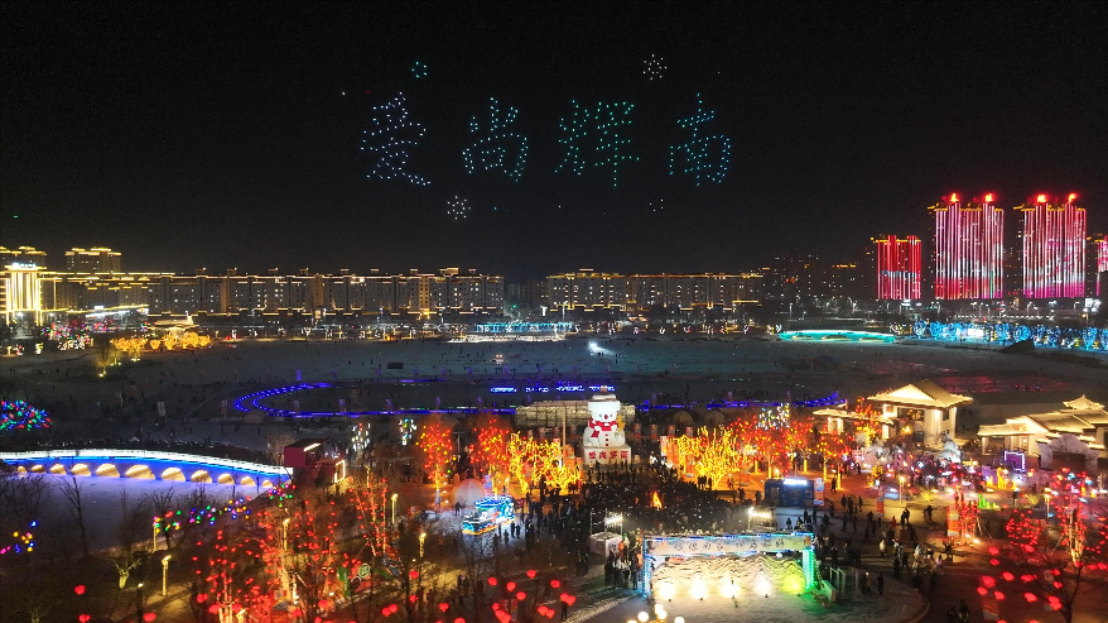 冬日的人民公園,燈火璀璨,冰輝雪映,熱鬧非凡。新穎的NPC互動吸引游客頻頻駐足,精彩的跨年晚會好戲連臺,無人機編隊表演與絢爛煙花秀點亮夜空,篝火DJ派對點燃冬日熱情。網紅挑戰賽掀起全民打卡熱潮,創意抽盲盒活動驚喜連連。在現場,更有小朋友抽到“學習禮包”的溫馨插曲,引得全場歡笑不斷。
