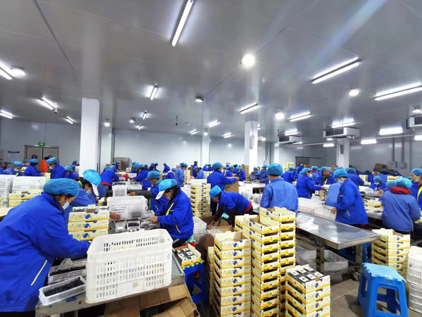 光華鎮地處長白山南麓,適宜的氣候條件、肥沃的黑土地加上哈泥河水滋養孕育,為藍莓生長提供了得天獨厚的條件。近年來,通化縣將藍莓果作為重點產業,光華鎮逐步發展成為以藍莓為主導產業的特色小鎮。 立足產品精深加工,不斷豐富藍莓附加值,“光華藍莓”在延伸產業鏈條上下了不少功夫。 跟隨徐銘遠來到禾韻藍莓收儲中心,冷氣迎面撲來,流水線上,原料果清洗、速凍、打包全程機械化;鮮果包裝車間里,400多名工人正忙著將剛剛采摘下來的新鮮藍莓按品級進行分揀、包裝。每天,近30噸包裝好的新鮮藍莓從這里乘專車、專機運往北京、上海、沈陽等多個城市,消費者當日便能享受到產地供應帶來的鮮美感受。
