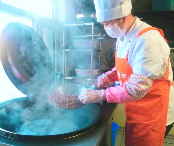 西屋灶臺里柴火正旺,徐云忠妻子王鳳杰圍著大鍋煮豆子;東屋車間里,這邊十幾名工人動作麻利地搗豆餡、包豆包......場面熱鬧而溫馨;那邊十層高的籠屜整齊碼在蒸箱里,時間一到,熱乎乎、香噴噴、黃燦燦的東北黏豆包“閃亮”出爐。經過案臺上挑揀、包裝等工序后,一袋袋、一箱箱包裝精致的小豆包開始了“暢銷之旅”。線上、線下闖市場:通過快手、抖音等平臺上的直播帶貨、線上包郵,遠銷到浙江省、黑龍江省和天津等30個地區;線下在周邊縣、鄉共設立近20個代銷點。