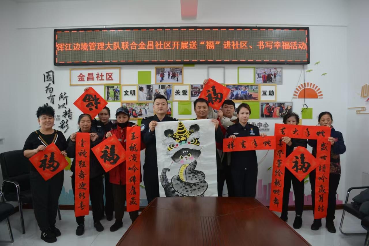 祥龍辭歲福滿卷,靈蛇納祥墨生香。為營造歡樂祥和的節(jié)日氛圍,弘揚中華傳統(tǒng)文化,1月26日,渾江邊境管理大隊前往白山市渾江區(qū)通溝街道金昌社區(qū)開展送“福”進社區(qū)、書寫幸福活動,讓大家感受到濃濃的年味,同時也豐富了居民的精神文化生活。
