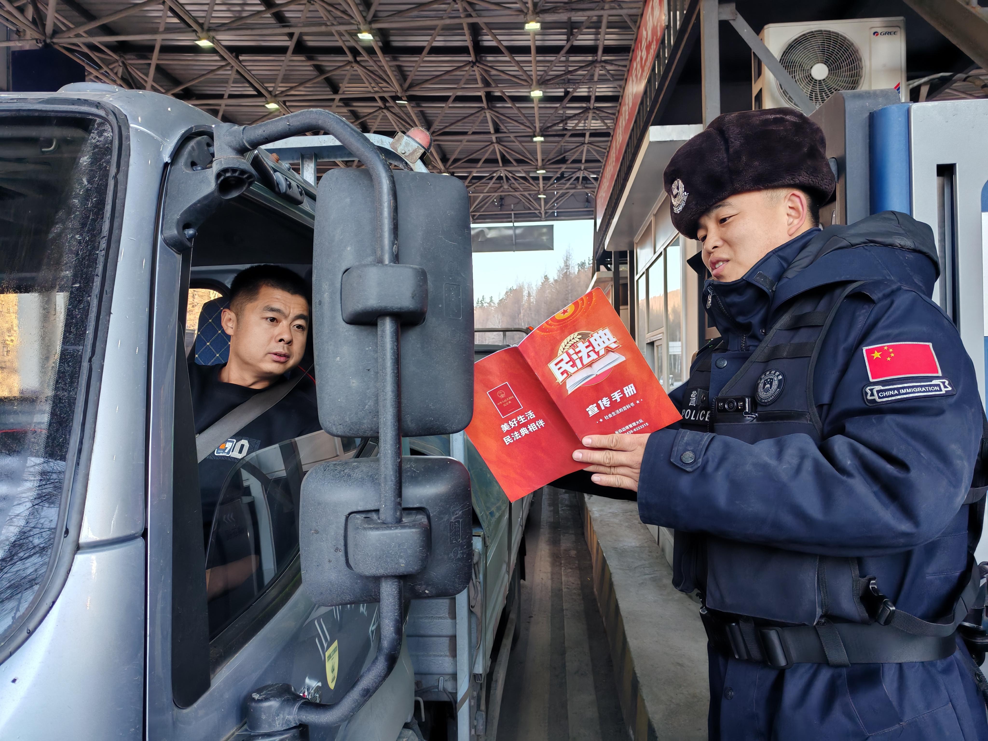 4月11日,在第十個“全民國家安全教育日”來臨之際,白山邊境管理支隊長白鎮邊境檢查站立足G331沿邊開放旅游大通道,以“全民國家安全教育、走深走實十周年”為主題,開展形式多樣的普法宣傳活動,執勤民警化身"國道普法先鋒",在執勤卡點搭建宣傳陣地,向過往車輛駕乘人員提供“法律課堂”特色服務,讓法治清風隨車流傳遍千里國道。 “什么是國家安全?”“生活中危害國家安全的行為有哪些?”活動期間,民警向群眾詳細講解總體國家安全觀重要內容和《中華人民共和國國家安全法》知識,同時,將國家安全教育與邊境法律法規有機融合,對日常執法執勤中涉及國家安全相關內容和注意事項進行宣傳講解、提醒教育,并呼吁群眾當好國家安全“前沿哨兵”,牢固樹立“國家安全人人有責”觀念,筑牢國家安全人民防線。“以前覺得國家安全離我們很遠,現在才知道原來國家安全和我們每一個人都息息相關。”一名參與活動的貨車司機說到。 站長張衛強表示:“我們既是安全底線的守門人,也是法治文明的播種機,下步,我站將以全民國家安全教育日為契機,通過建立“331國道安全驛站”、推出“法治能量包”等創新服務,讓每一輛經過331國道的車都成為法治中國的流動名片!”