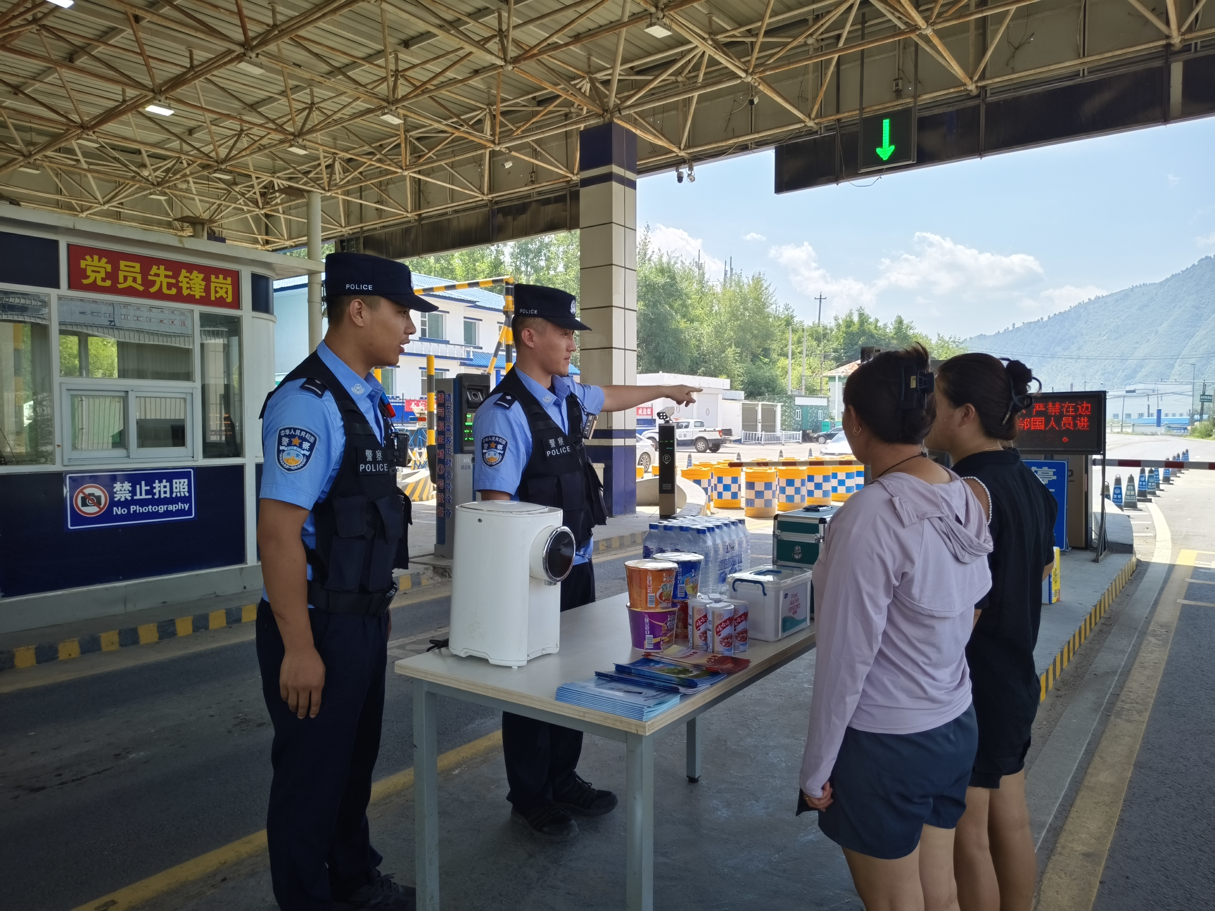 “沒想到在邊境線上還能喝到熱水,拿到防暑藥,太感謝了!”一位自駕游的游客接過民警遞來的藿香正氣水連連稱贊。服務(wù)臺設(shè)立以來,已累計(jì)提供咨詢幫助100余人次,發(fā)放礦泉水、應(yīng)急藥品等物資30余份,成為邊境線上的一道暖心風(fēng)景。 在提供便民服務(wù)的同時(shí),八道溝邊境檢查站民警結(jié)合執(zhí)勤工作,向過往群眾發(fā)放《邊境管理法規(guī)宣傳手冊》《反偷渡反走私知識圖解》《防電信網(wǎng)絡(luò)詐騙宣傳手冊》等資料,用通俗易懂的語言講解邊境禁區(qū)管理、出入境規(guī)定、舉報(bào)獎勵政策等內(nèi)容,并通過典型案例警示群眾自覺遵守法律法規(guī),共同維護(hù)邊境安全穩(wěn)定。 “原來在邊境地區(qū)拍照、放飛無人機(jī)都可能違法,今天真是學(xué)到了!”一名騎行愛好者認(rèn)真翻看手冊后感慨道。活動開展以來,共發(fā)放宣傳資料100余份,受教育群眾200余人次,有效提升了群眾的守法意識和國防觀念。 “八一便民服務(wù)臺”既是邊境檢查站服務(wù)群眾的窗口,也是警民攜手共護(hù)邊境的紐帶。下一步,八道溝邊境檢查站將持續(xù)深化便民舉措,優(yōu)化服務(wù)內(nèi)容,將“執(zhí)法執(zhí)勤”與“為民服務(wù)”深度融合,為邊境地區(qū)安全穩(wěn)定和群眾出行便利貢獻(xiàn)更大力量。 初審:郭小宇 復(fù)審:韓鐵英 終審:曹夢南 |