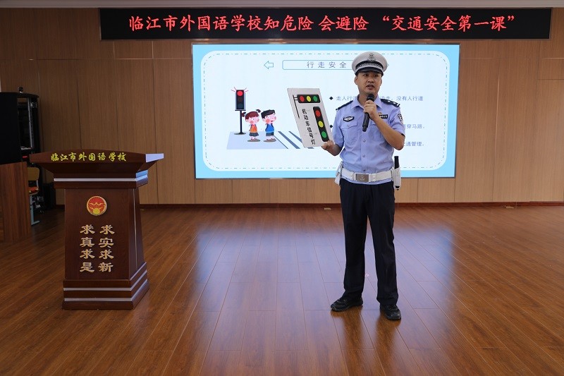 為進(jìn)一步增強(qiáng)學(xué)生“知危險、會避險”的安全防護(hù)能力,切實提升學(xué)生的交通安全意識,營造安全有序的校園周邊交通環(huán)境,9月1日,臨江市公安局交通管理大隊走進(jìn)外國語學(xué)校,為全校師生送去一堂生動且深刻的“交通安全開學(xué)第一課”,筑牢廣大師生交通安全防線,守護(hù)學(xué)生平安成長路。 活動中,民警通過播放幻燈片、展示交通標(biāo)識展板和答題互動等多種形式,用通俗易懂的語言為孩子們講解了交通信號燈、交通標(biāo)志以及如何安全過馬路、如何安全乘車、“一盔一帶”等交通安全知識。 為了讓同學(xué)們有更直觀的感受,民警通過播放轄區(qū)交通事故視頻,展示了隨意橫穿馬路、闖紅燈、不佩戴安全頭盔、“鬼探頭”等事故案例,一目了然地呈現(xiàn)了交通違法行為帶來的嚴(yán)重后果,這些極具沖擊力的真實畫面,讓同學(xué)們沉浸式體驗到了交通事故的慘烈現(xiàn)場,極大觸動了在場同學(xué)的內(nèi)心深處,使同學(xué)們深刻認(rèn)識到遵守交通規(guī)則的重要性。