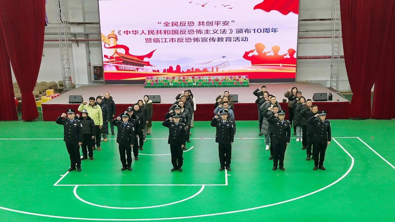 為紀念《中華人民共和國反恐怖主義法》頒布10周年,深入貫徹落實總體國家安全觀,扎實推進反恐怖主義工作常態化、社會化建設,進一步提升全民反恐防恐意識和能力,12月24日,臨江市公安局舉行反恐怖宣傳教育活動啟動儀式。臨江市公安局、臨江森林公安分局、市教育局、四保臨江戰役紀念館、市人民醫院等各反恐成員單位代表30余人共同見證活動啟動,凝聚全民反恐共識。