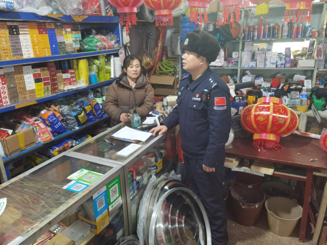 近日,白山邊境管理支隊寶山邊境派出所深入轄區開展煙花爆竹安全隱患大排查行動,采取“宣講+檢查+整改”工作模式,持續強化煙花爆竹全鏈條監管,嚴厲打擊非法經營行為。 行動期間,民警圍繞煙花爆竹的銷售渠道、存放場所、產品質量等情況展開全面檢查,并針對可能非法銷售煙花爆竹的副食店、日雜店、農村兜售攤點等進行拉網式清查;結合煙花爆竹安全管理相關法規,詳細講解零售點選址、儲存限量、運輸規范等硬性標準,針對“超量儲存”“無證銷售”“向未成年人售賣”等常見違規行為逐一闡明法律后果。為貼合商戶實際經營需求,民警現場指導商戶掌握儲存場所通風防潮、火源管控、日常隱患自查等實用技能,確保商戶學得會、用得上。