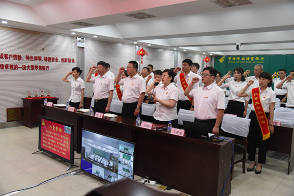 在州行行領導的帶領下,全體黨員共同重溫了入黨誓詞,再一次回顧了入黨初心,堅定理想信念,砥礪前行。