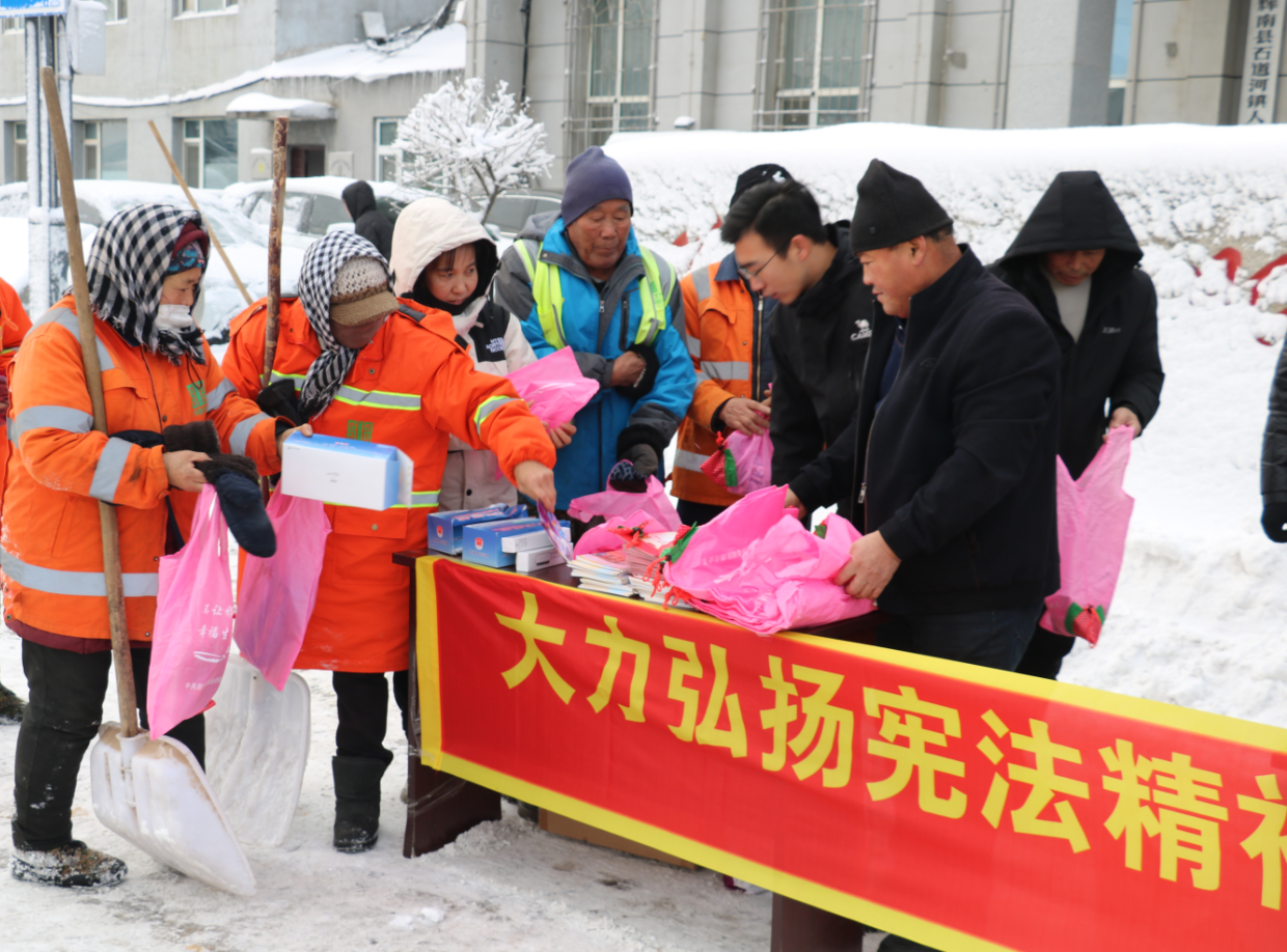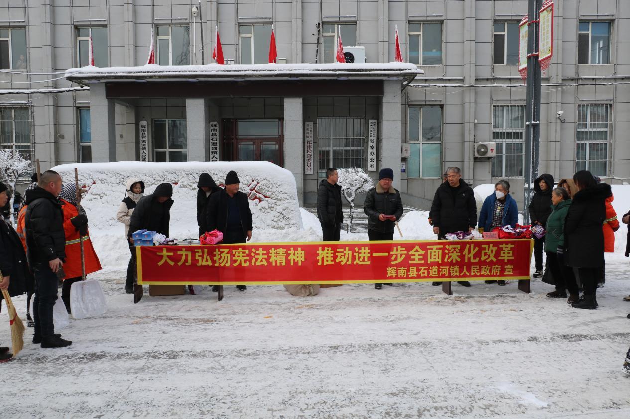 在第十個國家憲法日到來之際,輝南縣石道河鎮開展線下線上宣傳活動,為實現鄉村全面振興目標營造良好法治環境。