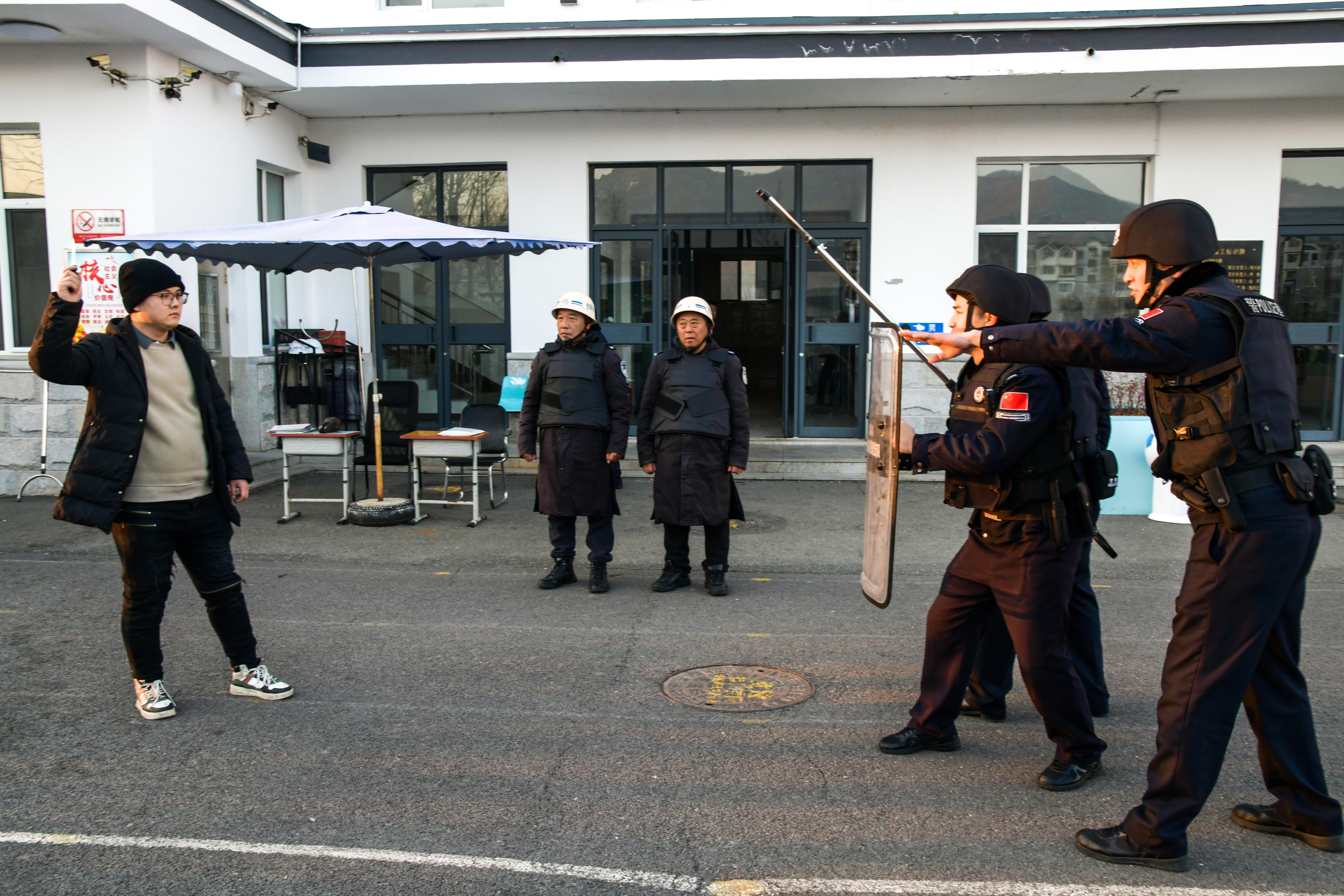 在轄區校園,該邊境派出所通過模擬歹徒非法侵入校園企圖行兇,學校啟動快速反應機制,民警使用長棍、鋼叉和防暴盾牌等器械將歹徒制服。在模擬制服歹徒的過程中,民警詳細地講解了如何使用校園所配備的警械,以及制服歹徒的要領,提高了師生特別是安保人員的防恐意識、安全自救能力以及協同應急處突能力。民警還通過安全知識宣講、情景模擬演練等形式,向師生講授校園安全知識,進一步提高了學校師生及安保人員的防范和自護意識。