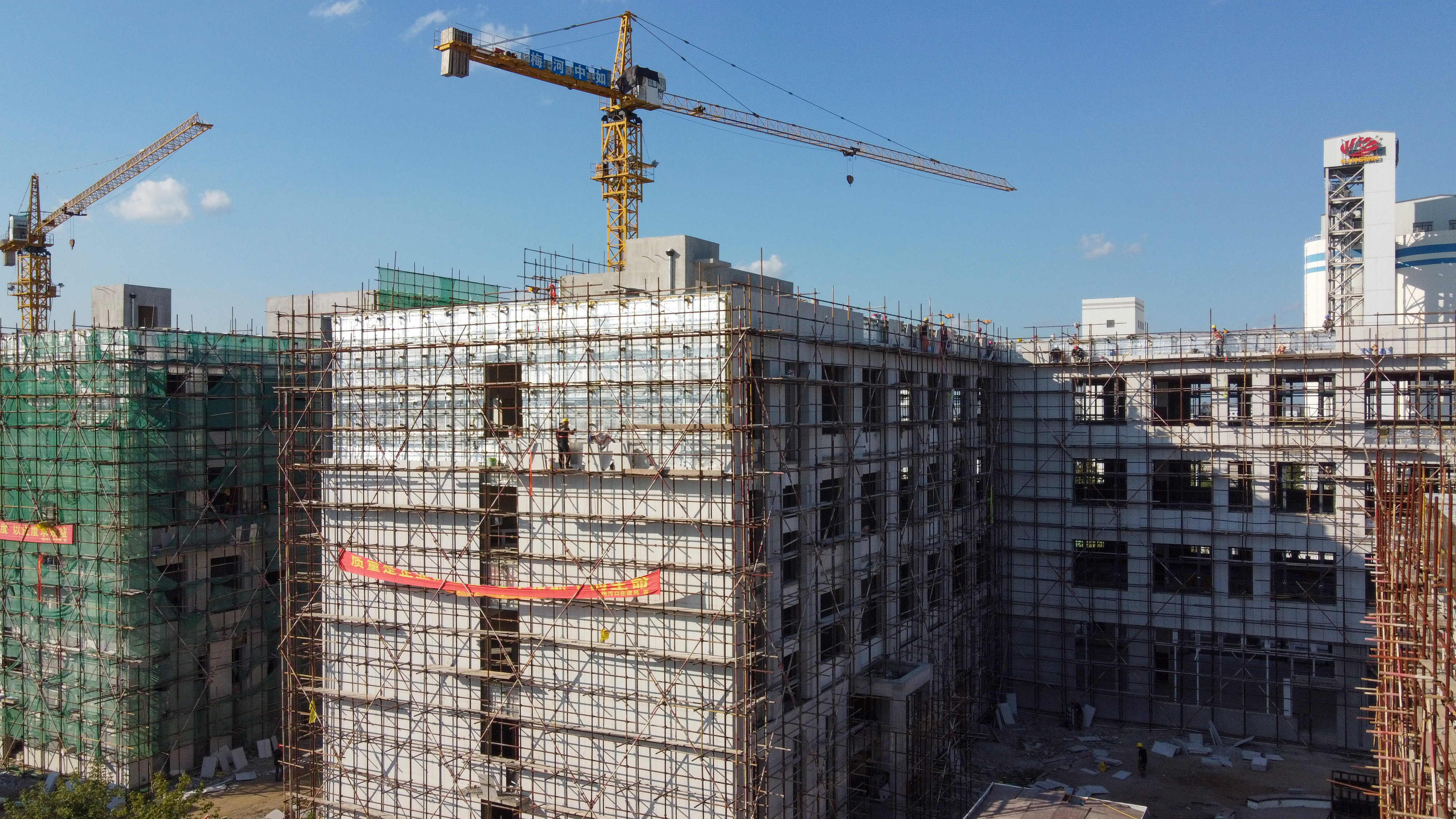 最近 天氣逐漸轉(zhuǎn)涼 但高新區(qū)園區(qū)內(nèi)還是 一派熱火朝天的景象 小編帶你直擊現(xiàn)場 413天 9888個小時 一幢幢高樓拔地而起 這就是 梅河口醫(yī)藥健康特色產(chǎn)業(yè)園區(qū)科技孵化器,項目總投資2.5億元,占地面積6.5萬平方米,建筑面積4.3萬平方米,共建設(shè)7棟建筑,主要建設(shè)科技研發(fā)中心、總部辦公大廈、黨建活動中心、院士工作站、孵化器,預(yù)計10月份全部交工,在短時間內(nèi)項目進展飛速,這離不開工地的建設(shè)者們,烈日炎炎,他們頂著驕陽汗流浹背在崗位上堅守,雨天,施工人員狠抓安全、質(zhì)量、工期不放松,他們身披雨衣、有條不紊地繼續(xù)施工,為高新區(qū)項目建設(shè)貢獻力量。