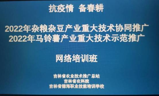 3月22日,為貫徹落實(shí)吉林省委省政府提出的“科技服務(wù)備春耕生產(chǎn)和疫情防控雙促進(jìn)、兩不誤”的要求,吉林省農(nóng)業(yè)技術(shù)推廣總站、吉林省農(nóng)科院聯(lián)合組織開展了“2022年雜糧雜豆重大技術(shù)協(xié)同推廣、馬鈴薯特色產(chǎn)業(yè)重點(diǎn)技術(shù)推廣項(xiàng)目”備春耕網(wǎng)上培訓(xùn)工作。