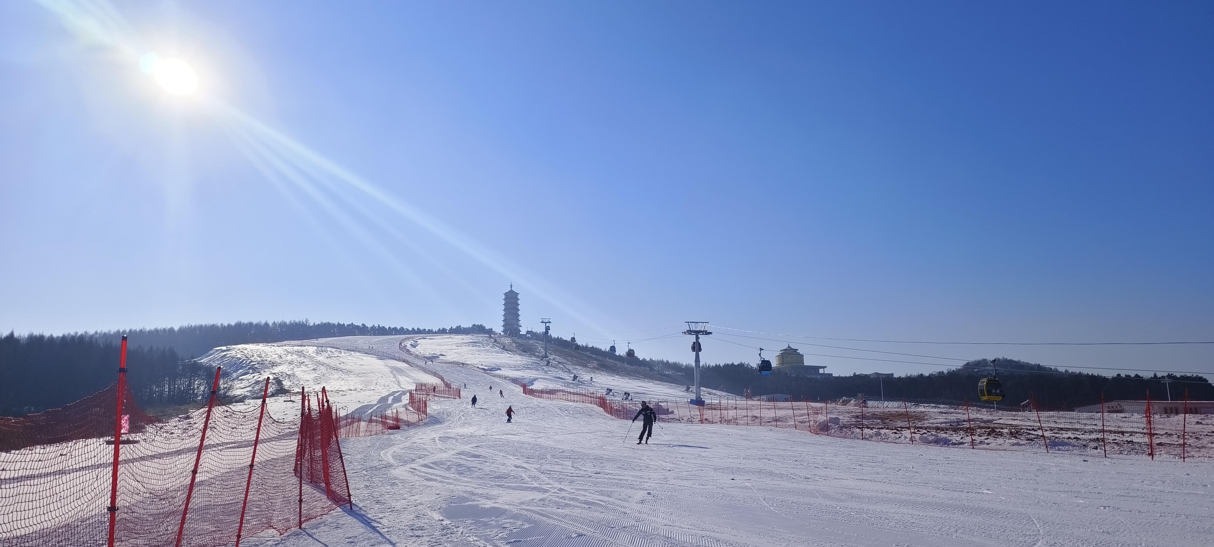 五奎山滑雪場共設有5條雪道,配備一條纜車索道和兩條魔毯,雪道總長度近3公里,占地面積604畝;纜車索道長度654米;兩條魔毯長度分別為240米和326米。