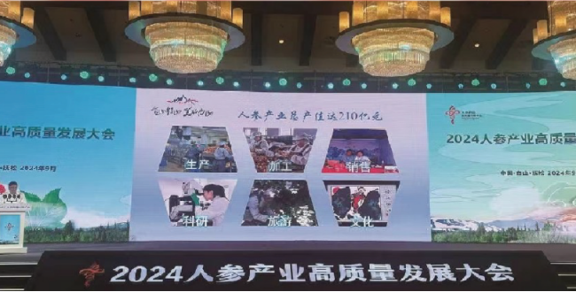 在人參產業的發展征程中,撫松縣立足根本、扎實前行。全縣有4.5萬人投身人參產業,域內人參留存面積 720公頃,產量3496噸,產值2.22億元;林下參留存面積1.4萬公頃。
