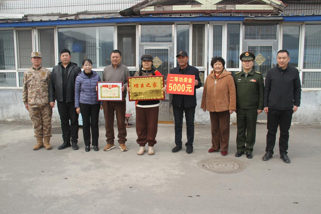 愛(ài)國(guó)奉獻(xiàn)在軍營(yíng),立功喜報(bào)傳家鄉(xiāng),近日,臨江市人武部聯(lián)合臨江市退役軍人事務(wù)局,為在軍隊(duì)立功受獎(jiǎng)的現(xiàn)役軍人蘭濤等5名同志的家庭送去立功喜報(bào)及功臣之家牌匾。 活動(dòng)中,相關(guān)部門為立功軍人家庭送上“功臣之家”牌匾,并為其家屬佩戴綬帶,現(xiàn)場(chǎng)送上喜報(bào)、慰問(wèn)金。軍功章不僅凝聚了軍人矢志強(qiáng)軍的熱血和汗水,也記錄了軍屬的默默支持和辛勤付出。而軍人的家屬,默默承擔(dān)起家庭的責(zé)任,在生活中給予軍人溫暖和力量,成為軍人堅(jiān)實(shí)的后盾。 近年來(lái),臨江市堅(jiān)持把慰問(wèn)立功受獎(jiǎng)家庭作為擁軍優(yōu)屬的一項(xiàng)重要工作,全心全力為擁軍優(yōu)屬“雙擁工作”做好服務(wù)保障。通過(guò)送喜報(bào)等活動(dòng),不斷增強(qiáng)軍人軍屬的榮譽(yù)感和獲得感,營(yíng)造“讓軍人成為全社會(huì)尊崇的職業(yè)”的濃厚氛圍。市人武部還利用送喜報(bào)時(shí)機(jī),對(duì)適齡青年開(kāi)展征兵政策宣傳,不斷激勵(lì)廣大有志青年參軍入伍、建功軍營(yíng),為國(guó)防事業(yè)貢獻(xiàn)自己力量。