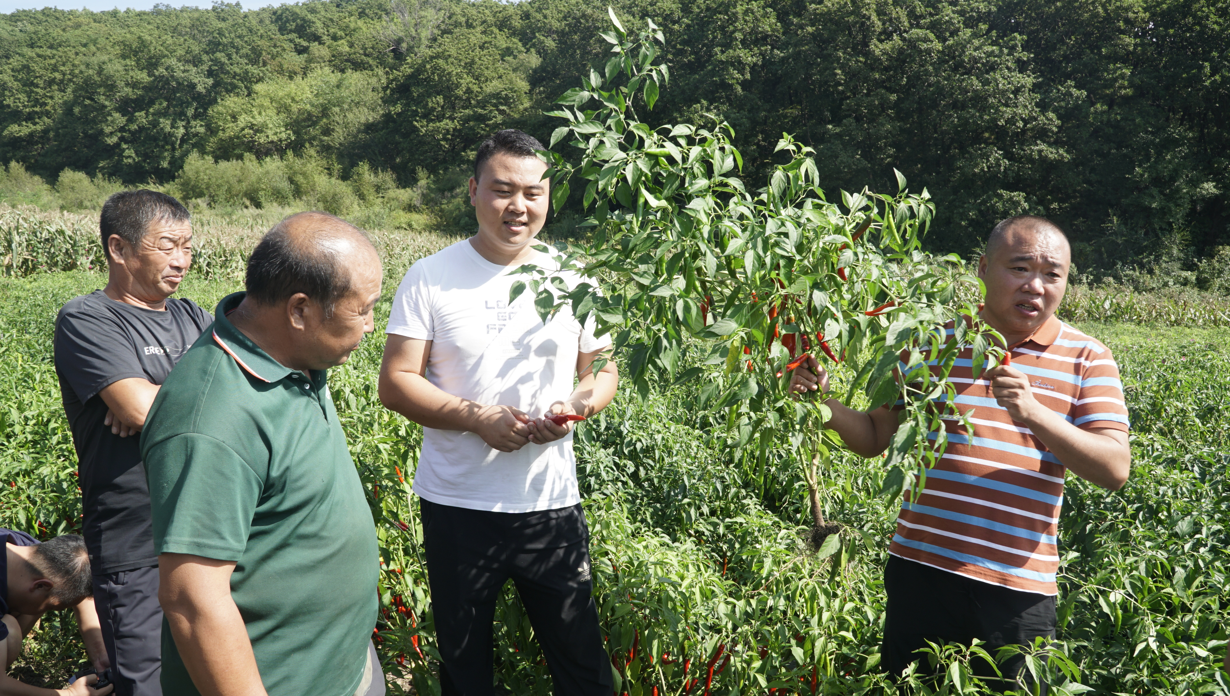 9月5日,伊通滿族自治縣馬鞍山鎮崗陽村云志家庭農場的30畝辣椒進入采收倒計時,紅彤彤的果實映紅了山坡,也點燃了周邊農戶發展“庭院經濟”的熱情。一場由合作社、保險公司、縣鎮村多方參與的現場會,把鼓勵農民發展庭院經濟、合作社提供種植辣椒技術、合作社簽合同負責回收紅辣椒、正常年景收益是種植玉米的兩至三倍等內容掰開揉碎講給農民聽,標志著吉林省“庭院辣椒”項目邁向全域推廣。 “這塊地就是我天天惦記的‘致富夢’開始的地方,沒想到第一年就紅了!”家庭農場負責人王建偉蹲在田壟間,捧起一掛果實飽滿的辣椒秧,向周圍的農戶展示。王建偉的“底氣”來自公主嶺市學亮田園種植專業合作社提供的“一條龍”服務:統一供苗、統一技術、統一保險、統一回收。