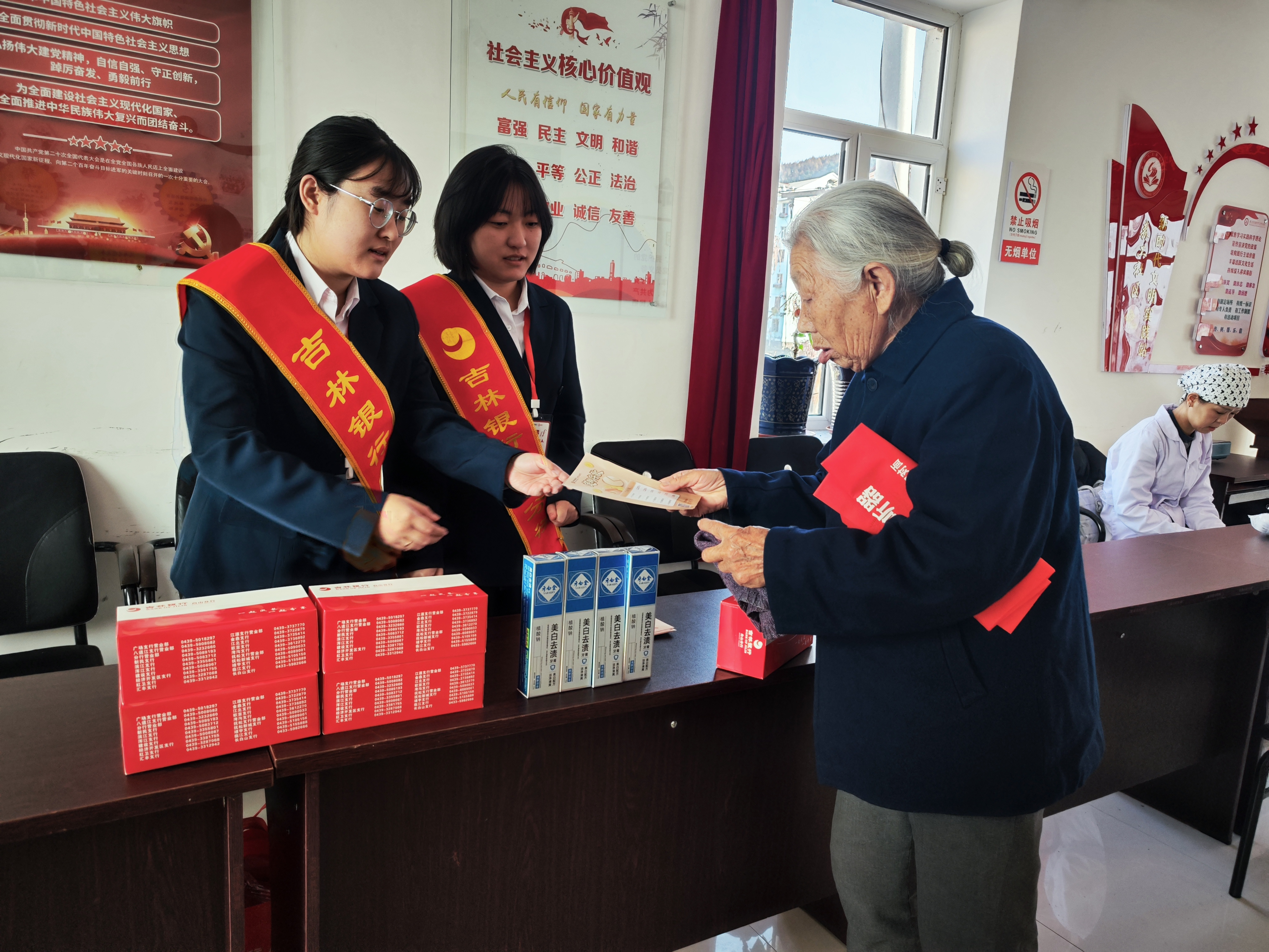 森工街道森工社區(qū)則聚焦老年群體“健康+安全”雙需求,打造全方位關(guān)懷活動(dòng)。社區(qū)聯(lián)合遲慧牙所和吉林銀行,分設(shè)兩大服務(wù)區(qū)域:口腔義診區(qū),醫(yī)生為老人檢查口腔健康,解答齲齒、牙周炎、義齒維護(hù)等問(wèn)題,手把手教學(xué)科學(xué)護(hù)牙方法;反詐宣傳區(qū),吉林銀行工作人員通過(guò)手冊(cè)講解“虛假投資”“保健品詐騙”等套路,教老人辨別詐騙話術(shù),叮囑守護(hù)“養(yǎng)老錢”。老人們?cè)诩议T口享受到便捷服務(wù),真切感受社區(qū)溫暖。