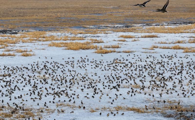 春乍歸,冰初融,物華豐,眾鳥集。當(dāng)下,吉林省波羅湖國(guó)家級(jí)自然保護(hù)區(qū)候鳥們“千里逢迎、少長(zhǎng)云集”,已有20余萬(wàn)只來(lái)此棲息覓食,補(bǔ)充給養(yǎng)。它們?cè)谶@里早舞朝陽(yáng)、日覓食物、晚歸酣眠,既有生活物資,又有玩耍之處,還有安穩(wěn)之家,好不快樂。鳥兒們與保護(hù)區(qū)工作人員一道,共同奏響了春的旋律,畫出了吉林大美生態(tài)圖景。