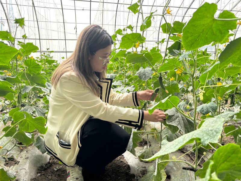 這是伊通滿族自治縣“90后”海歸李梓源2023年交出的田園“答卷”。對于這份“答卷”,她說,還有很長的路要走。 鄉村振興,關鍵在人。2017年,李梓源從倫敦大學皇家霍洛威學院畢業;2018年前,她是海歸學霸,現在的她是“新農人”。從海歸到“新農人”,她依靠新技術、新理念、新思維發展農業,帶領村民致富。 “當時在國外讀書時我接觸到一些國外的農業模式,國外農場幾個人能管理幾千畝的農場,所以我就想帶領鄉親們做高效、生態的農場,提高村民的收入。”帶著這種質樸的想法,李梓源回到家鄉。 某種意義上,李梓源是“創二代”,因為她的父母本身就是敢闖敢拼的“新農人”。作為伊通滿族自治縣嘉悅生態農業科技開發有限公司的總經理,李梓源負責整體運營管理,制定公司經營目標、發展計劃、發展技術創新、項目開發、創建品牌等工作。 4月21日,走進嘉悅生態農業公司的蔬菜大棚,一壟壟黃瓜掛滿藤蔓枝頭,一朵朵黃花點綴其間,翠綠誘人、清香撲鼻,一派喜人的豐收景象。 “為什么大家都喜歡你的農產品?” “對產品的認可來源于對園區管理方式,我們采用傳統方式種養,施用有機肥,保留作物原有營養?!崩铊髟聪蛴浾呓榻B。 公司一直堅持不用除草劑,大量使用有機肥,利用生物制劑做植保和物理防控相結合,讓大家吃上放心食品。 說起農業知識,李梓源頭頭是道?;剜l創業這幾年,李梓源深感周圍的創業環境越來越好、政策越來越優,政府給予的支持力度也越來越大。一人富不算富,大家富才算富。在個人事業收獲初步成功之余,李梓源希望帶動更多農民一起致富。 “我們采用‘商戶+農戶’合作方式,把種子、有機肥給到周邊合作社、農戶,通過帶動村民標準化種植,保證成品回收,給農民帶來穩定收入。”李梓源說。