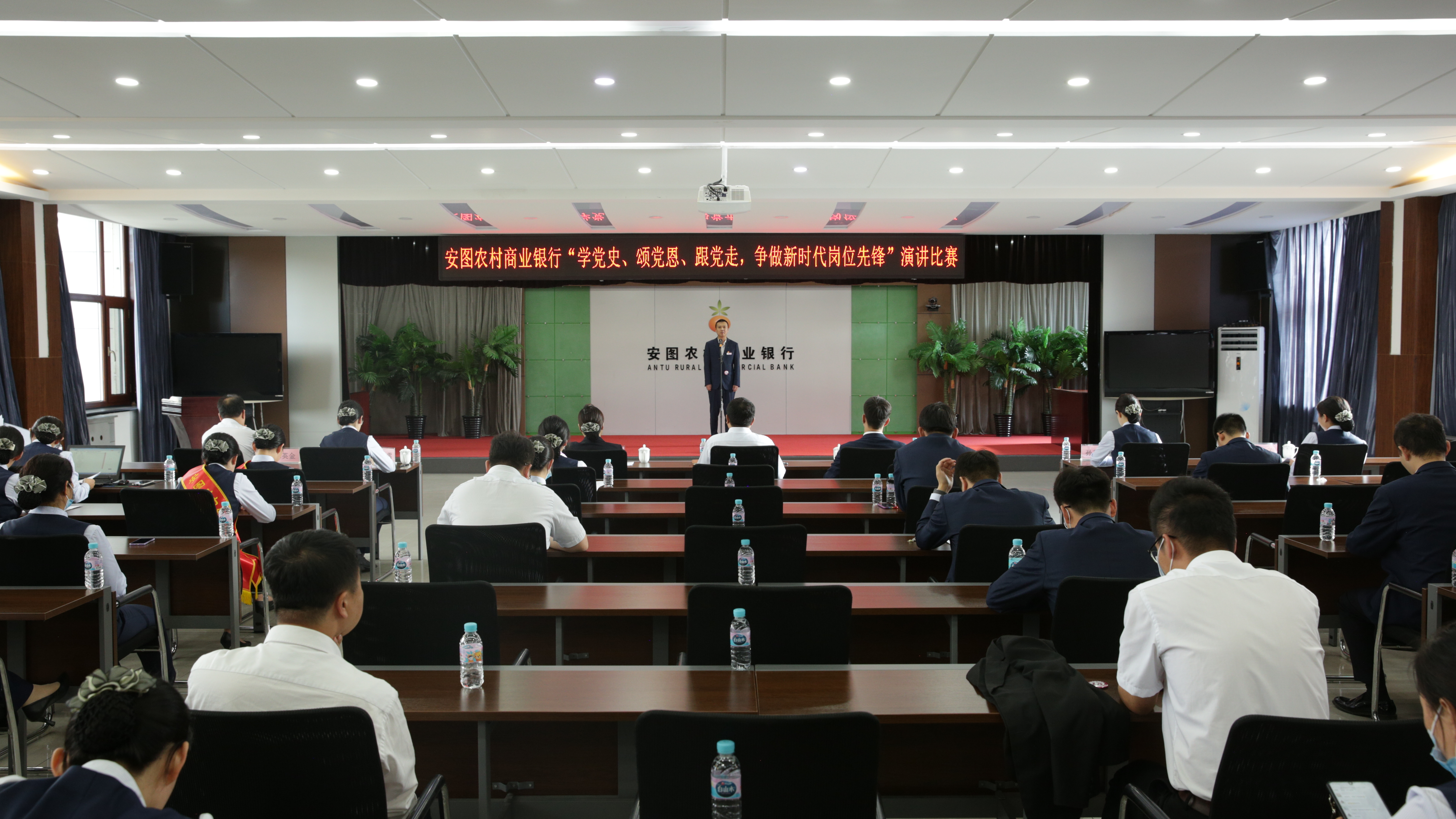 為慶祝中國共產黨百年華誕,重溫黨的光輝歷程,歌頌黨的偉大成就,激勵全體員工奮進新時代的昂揚斗志,9月10日下午,安圖農村商業銀行舉辦了“學黨史、頌黨恩、跟黨走,爭做新時代崗位先鋒”演講比賽活動。15名青年員工參賽,安圖農村商業銀行全體高管及部分員工代表參與了此次比賽。