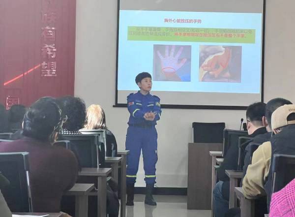 活動(dòng)中,寧江區(qū)藍(lán)天救援隊(duì)的兩名志愿宣講員針對(duì)《群體性踩踏事件應(yīng)急自救與處理》和《心肺復(fù)蘇操作要點(diǎn)》開展專題培訓(xùn)。宣講員采取“理論+案例+實(shí)操”的方式,結(jié)合日常生活中的案例向大家詳細(xì)講解了實(shí)施心肺復(fù)蘇時(shí)判斷意識(shí)、呼吸的方法,規(guī)范示范了如何打開氣道、實(shí)施胸外心臟按壓和人工呼吸的動(dòng)作要領(lǐng)以及急救步驟,并現(xiàn)場(chǎng)使用模擬人設(shè)備進(jìn)行演示。演示后,與會(huì)人員進(jìn)行實(shí)操訓(xùn)練,在宣講員的耐心指導(dǎo)下,大家都掌握了心肺復(fù)蘇等救援的技巧。