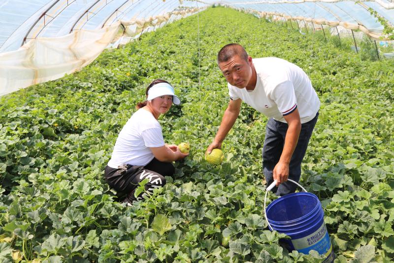 于是,夫妻倆開(kāi)始購(gòu)置原材料建大棚。忙活了一個(gè)多月,2019年秋季就建了兩棟蔬菜大棚。2020年春季開(kāi)始育苗,主要生產(chǎn)黃瓜和豆角,當(dāng)年就取得了較好的收入。隨后著手?jǐn)U大生產(chǎn)規(guī)模,如今已經(jīng)建了7棟大棚,生產(chǎn)品種也不斷增加。他們?cè)诓粩鄬W(xué)習(xí)中掌握了輪作技術(shù)、反季節(jié)蔬菜生產(chǎn)技術(shù)、蔬菜病毒害防治技術(shù),大棚種植面積5000平方米,種植兩季果蔬,第一茬是香瓜,第二茬是西紅柿。